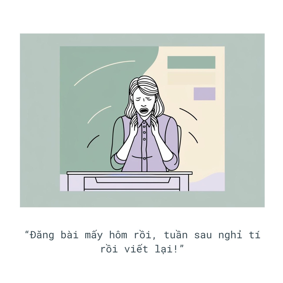 "Hôm nay bán được 5 đơn rồi, nghỉ mai vậy. À, mà tuần này mình bận việc gia đình, để tuần sau bán tiếp."